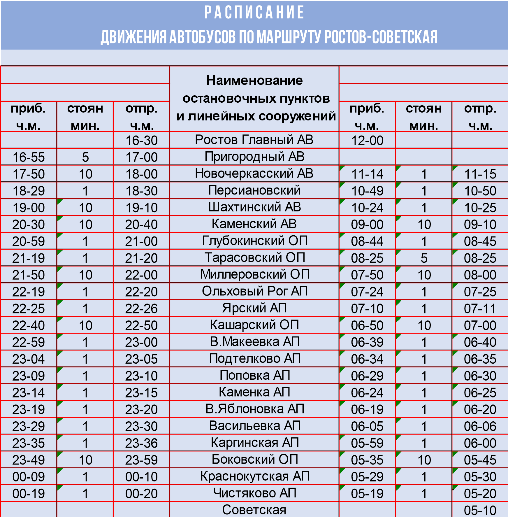 Автобус следует через крупные города и райцентры: г. Новочеркасск, г. Шахты, г. Каменск, п. Тарасовский, сл. Кашары, ст-ца. Боковская, а также новые остановочные пункты, перечисленные выше.